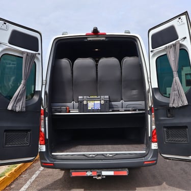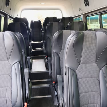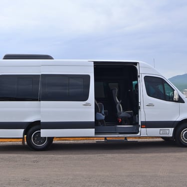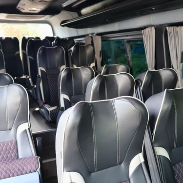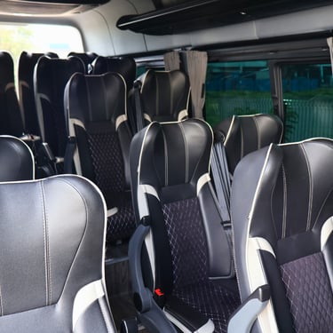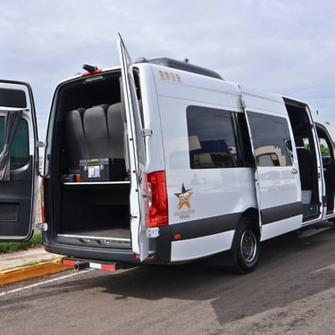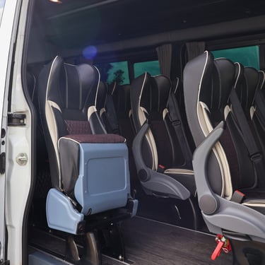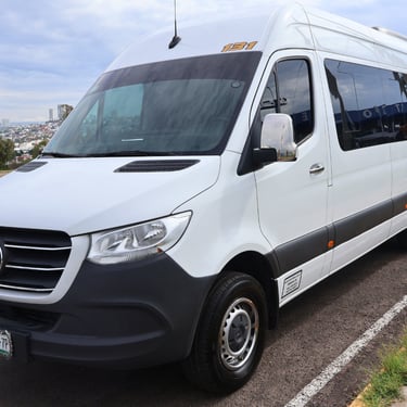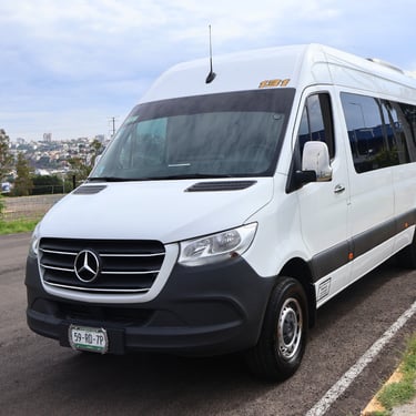 Variedad de autobuses, camionetas y autos para transporte personal y de grupos